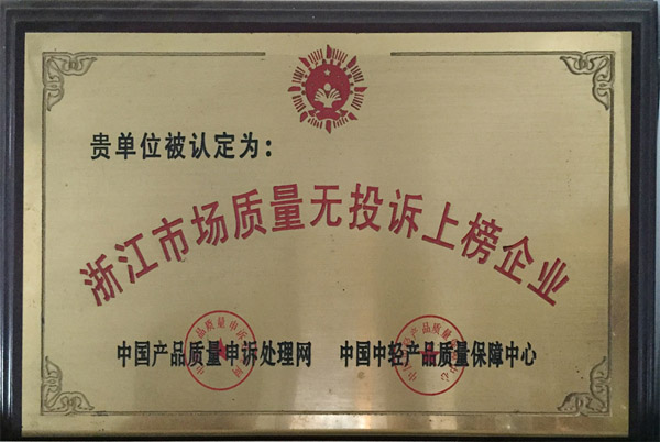 浙江生產(chǎn)質(zhì)量無投訴上榜企業(yè)